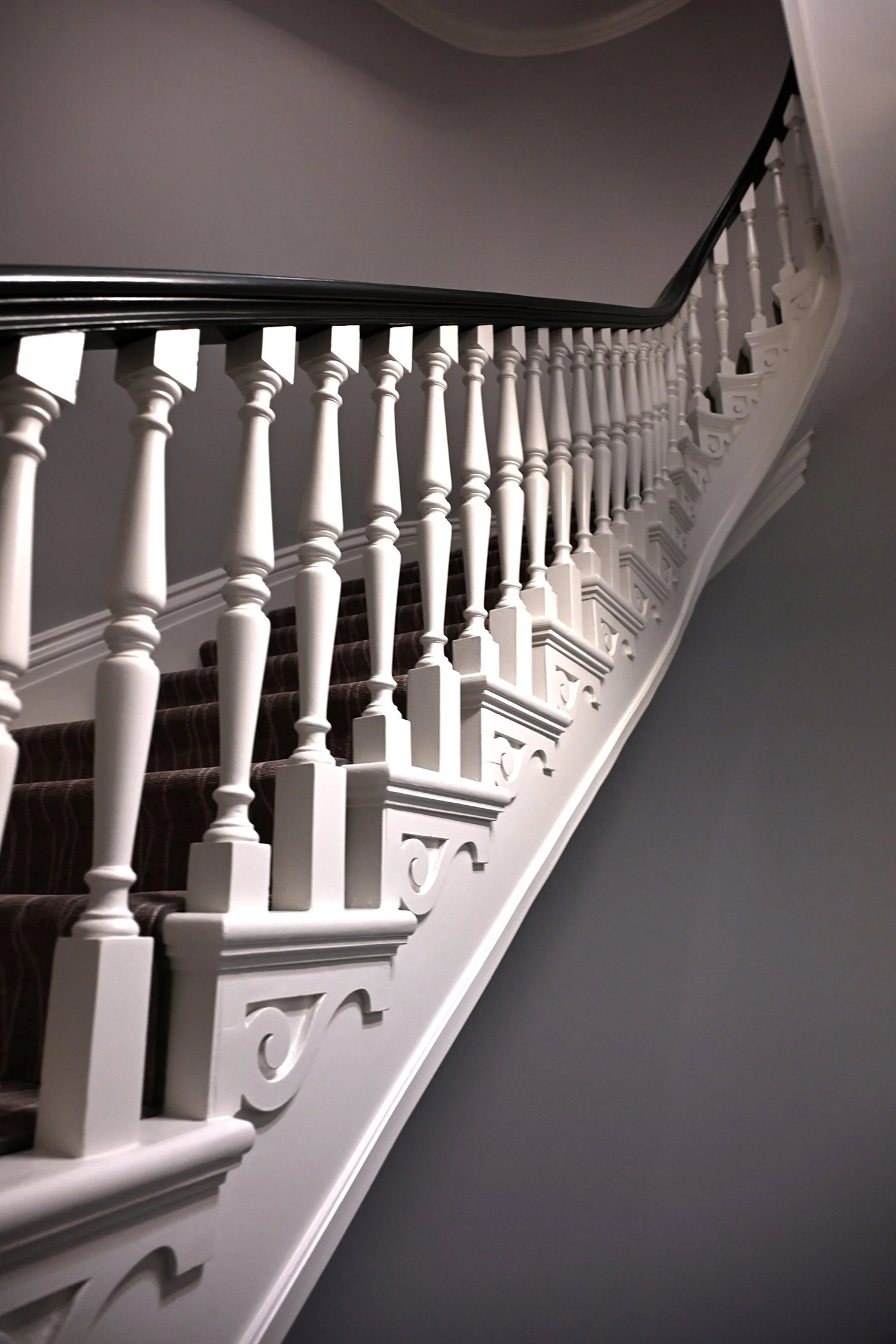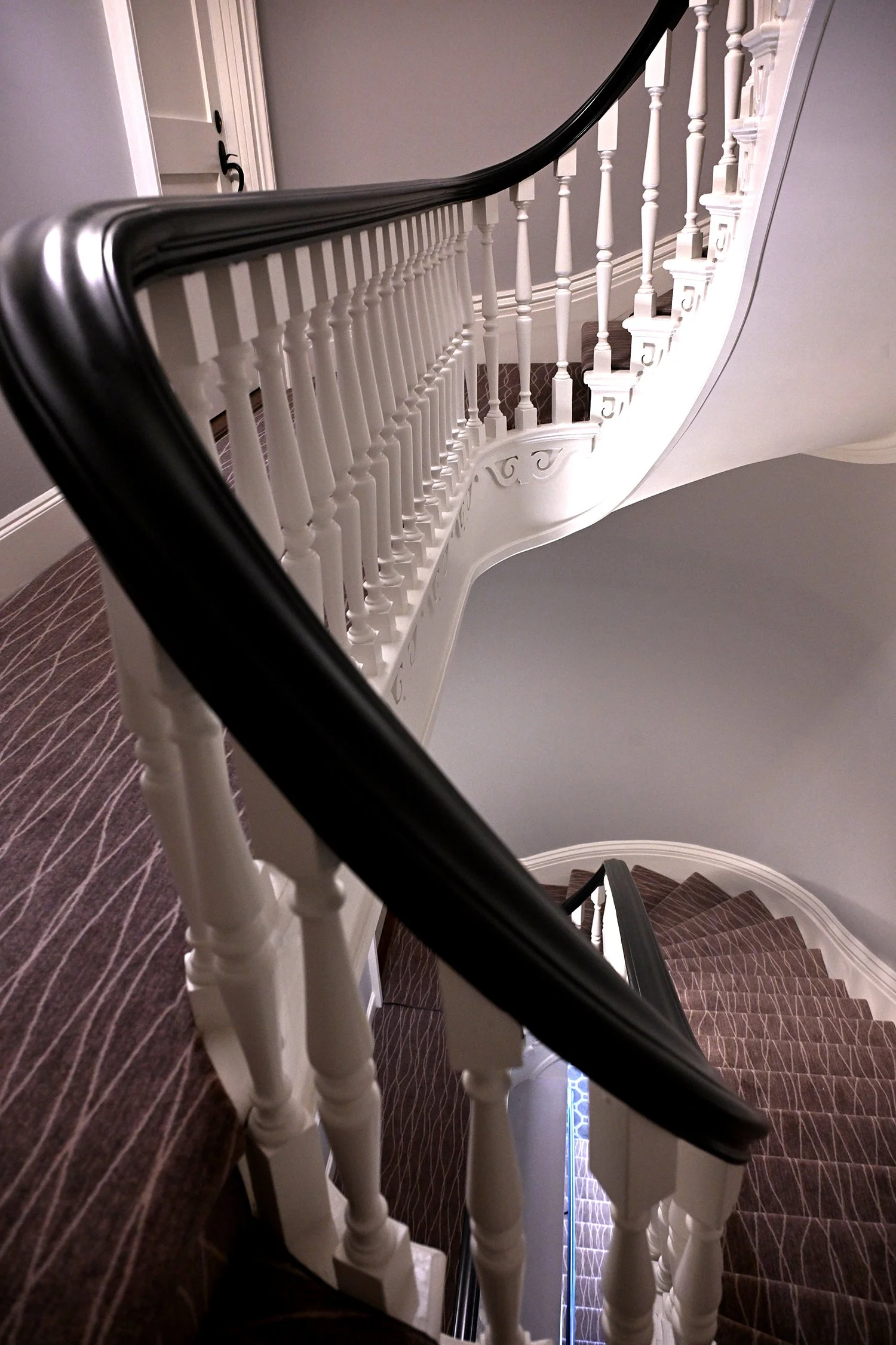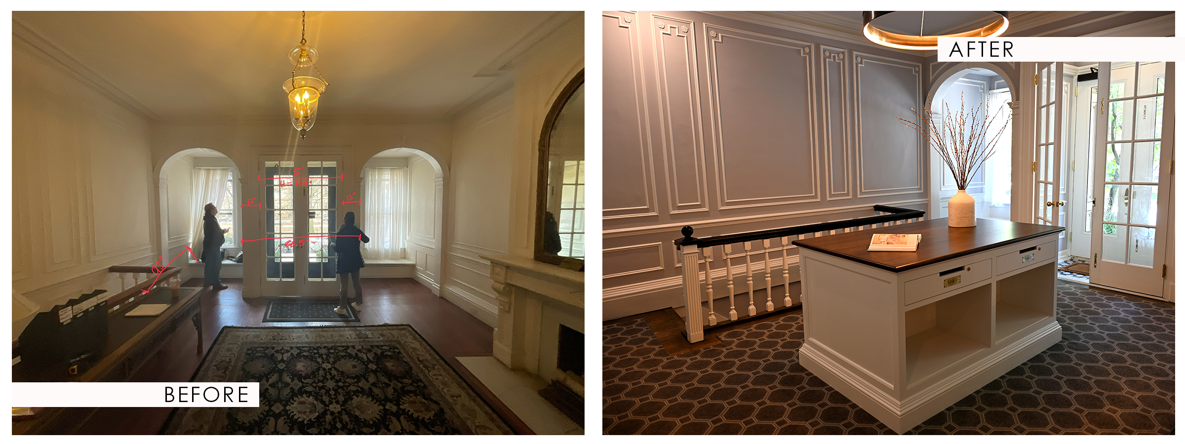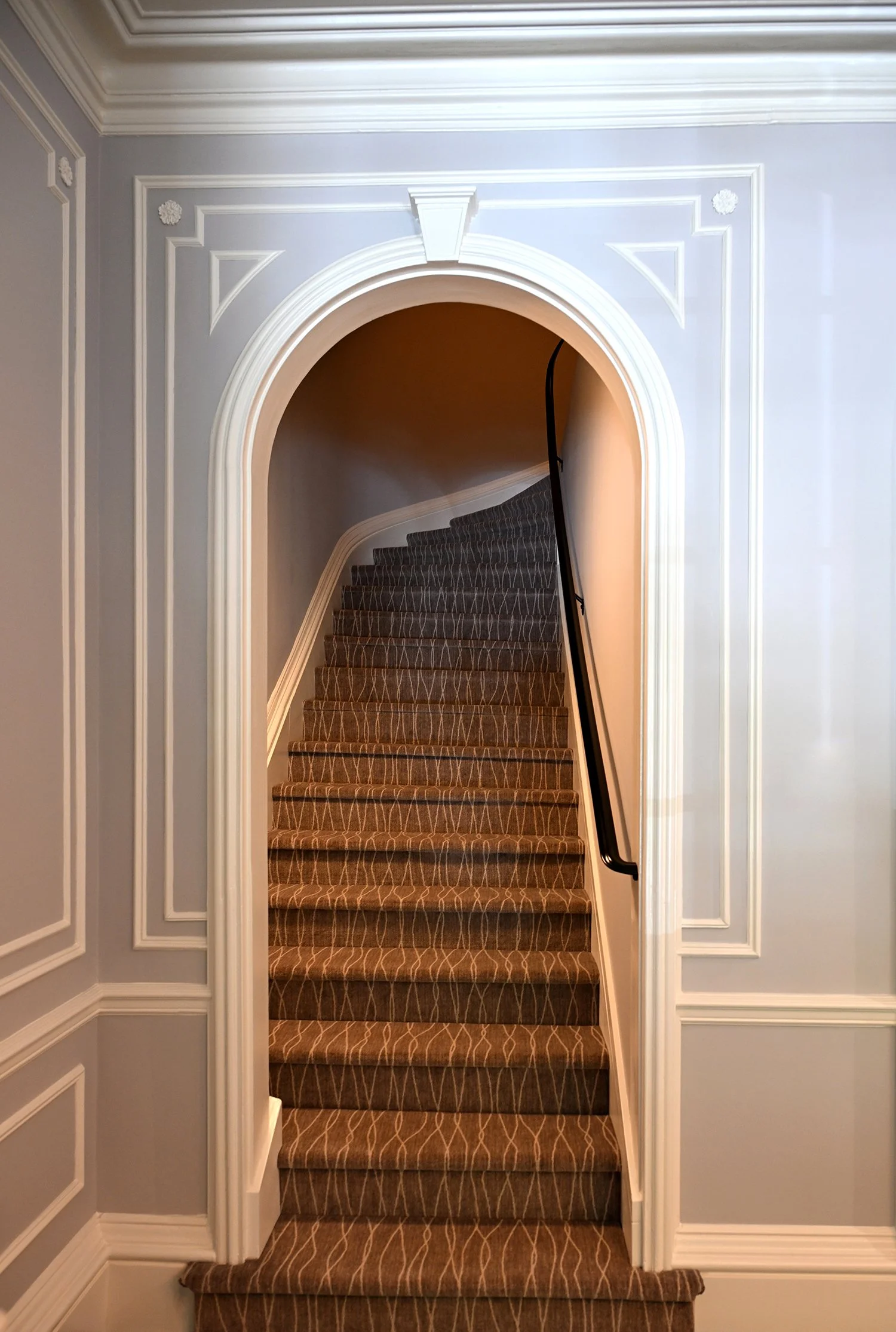 Having completed a renovation of a two-story apartment in this building, SKA was asked to return to assist with a renovation of the common areas. The extensive facelift involved refreshing the lobby level and adding a new mail station, repairing and leveling the entire main staircase, updating the railings and paint, and redesigning the lighting.