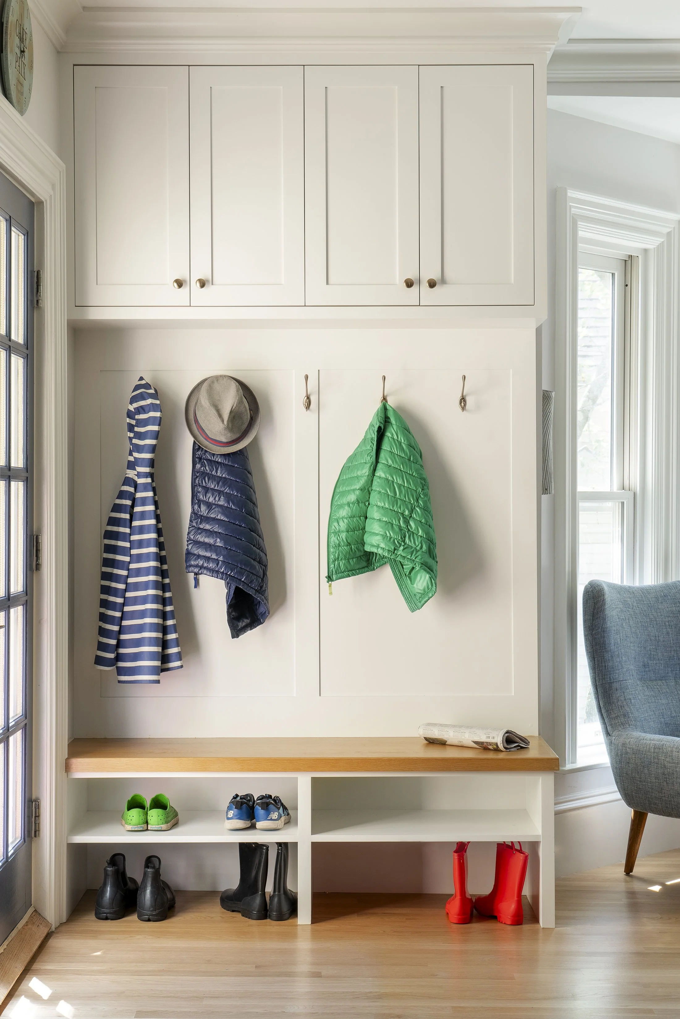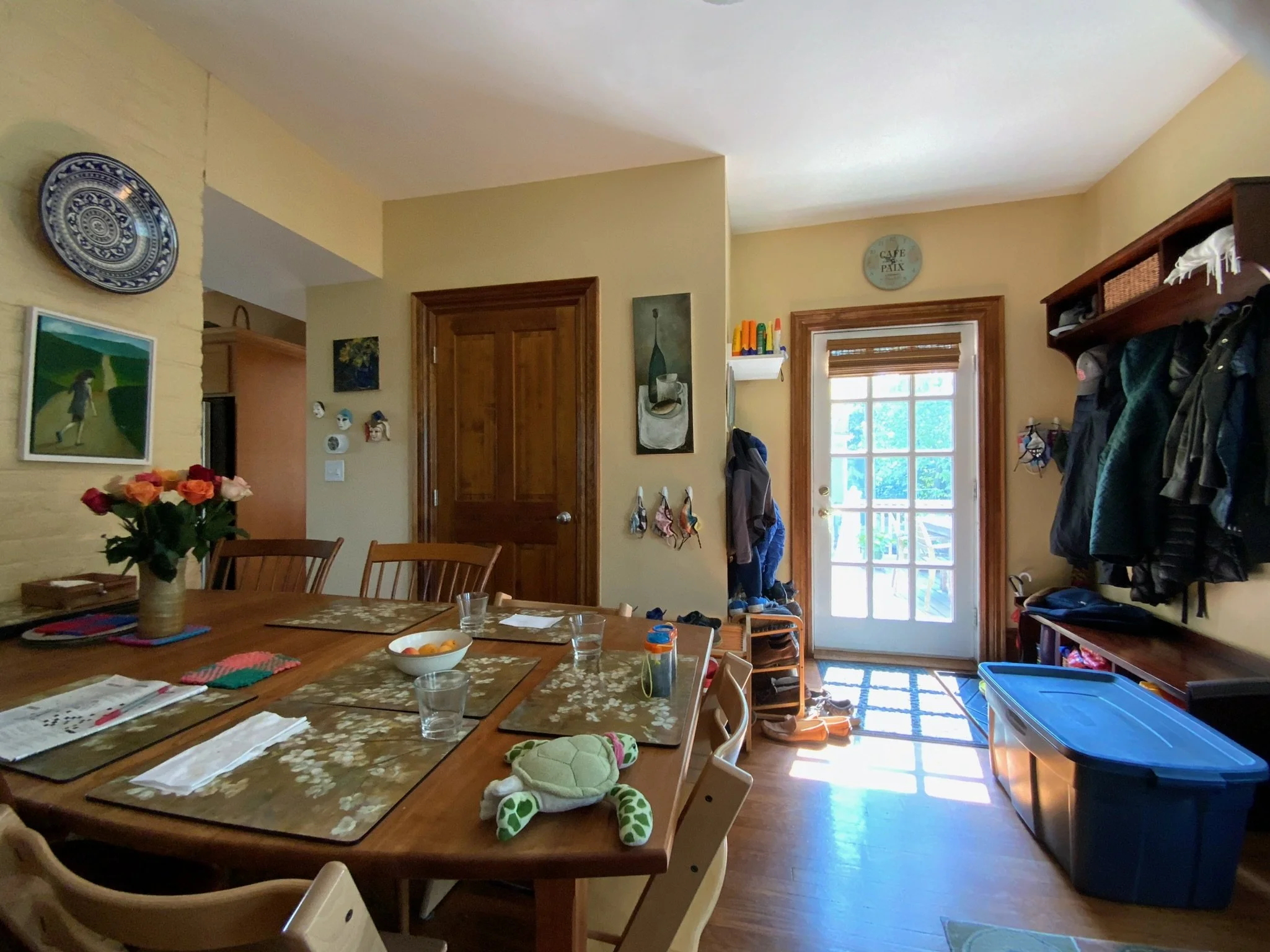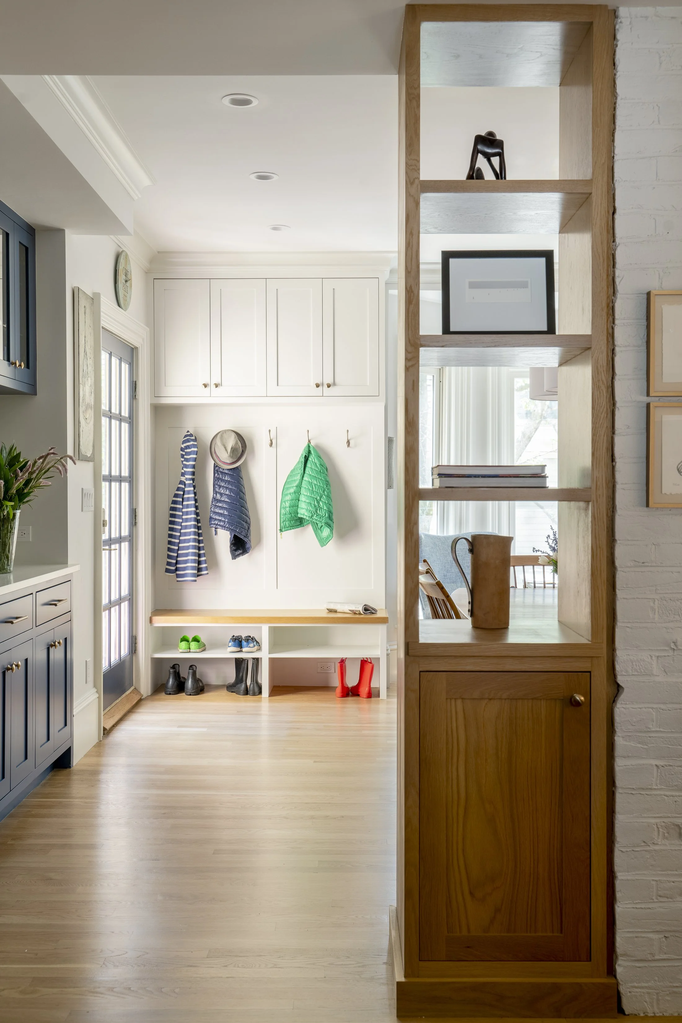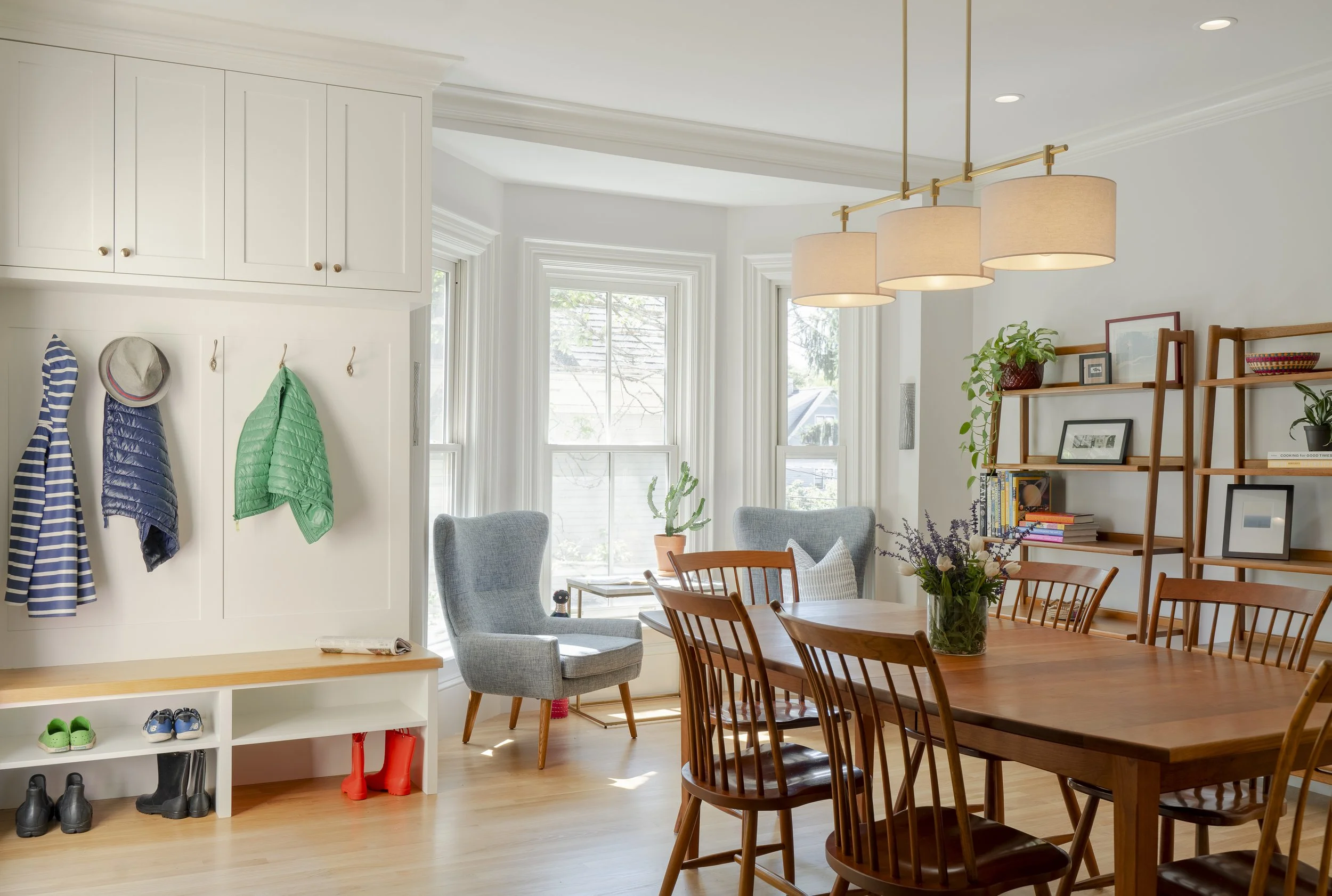 This renovation reimagines a classic attached single-family home into a thoughtfully expanded and modernized space for a family of five. The transformation began with a full gut renovation of the second level, creating an open and inviting layout. A new entry foyer and mudroom offer a warm welcome, while the expanded kitchen becomes the heart of the home, connecting seamlessly to a refreshed living room and a reimagined bathroom.