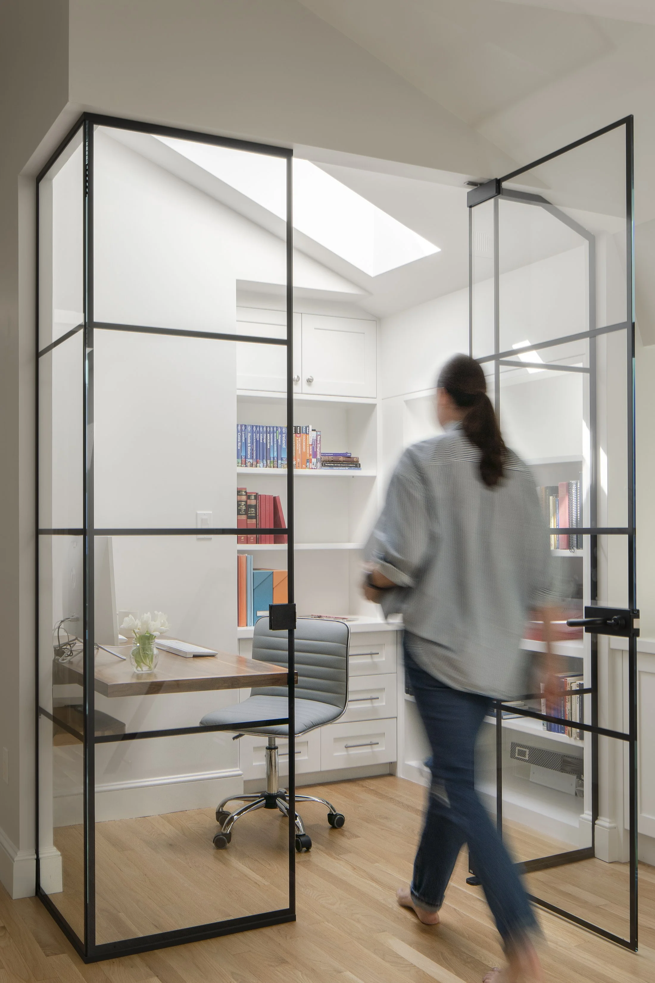 The redesign introduced additional living areas on the first and third levels, including a sunlit home office and a luxurious main suite featuring a walk-in closet and spa-like bathroom. A custom staircase, carefully crafted to navigate the constraints of the original layout, now gracefully connects the second and third levels.