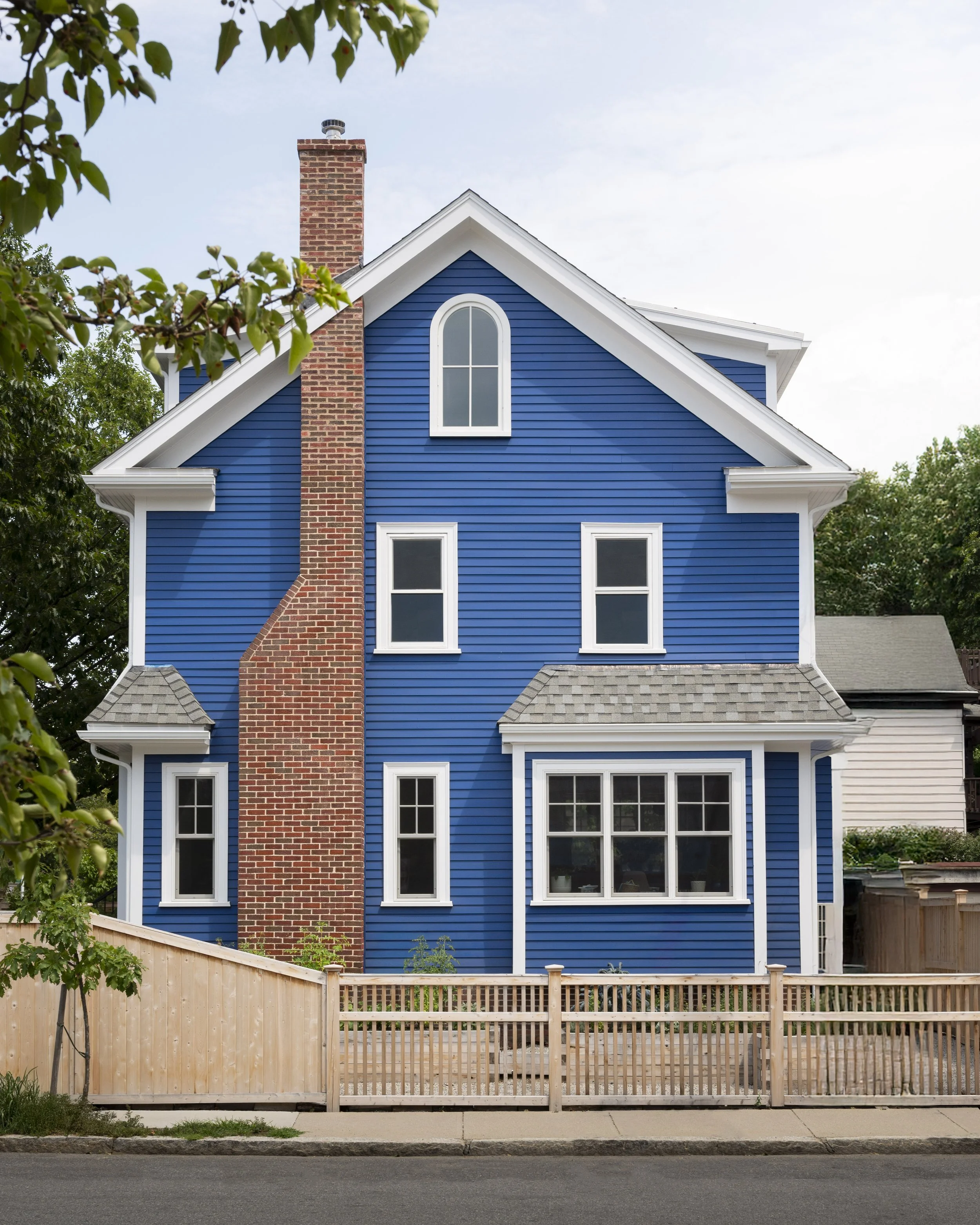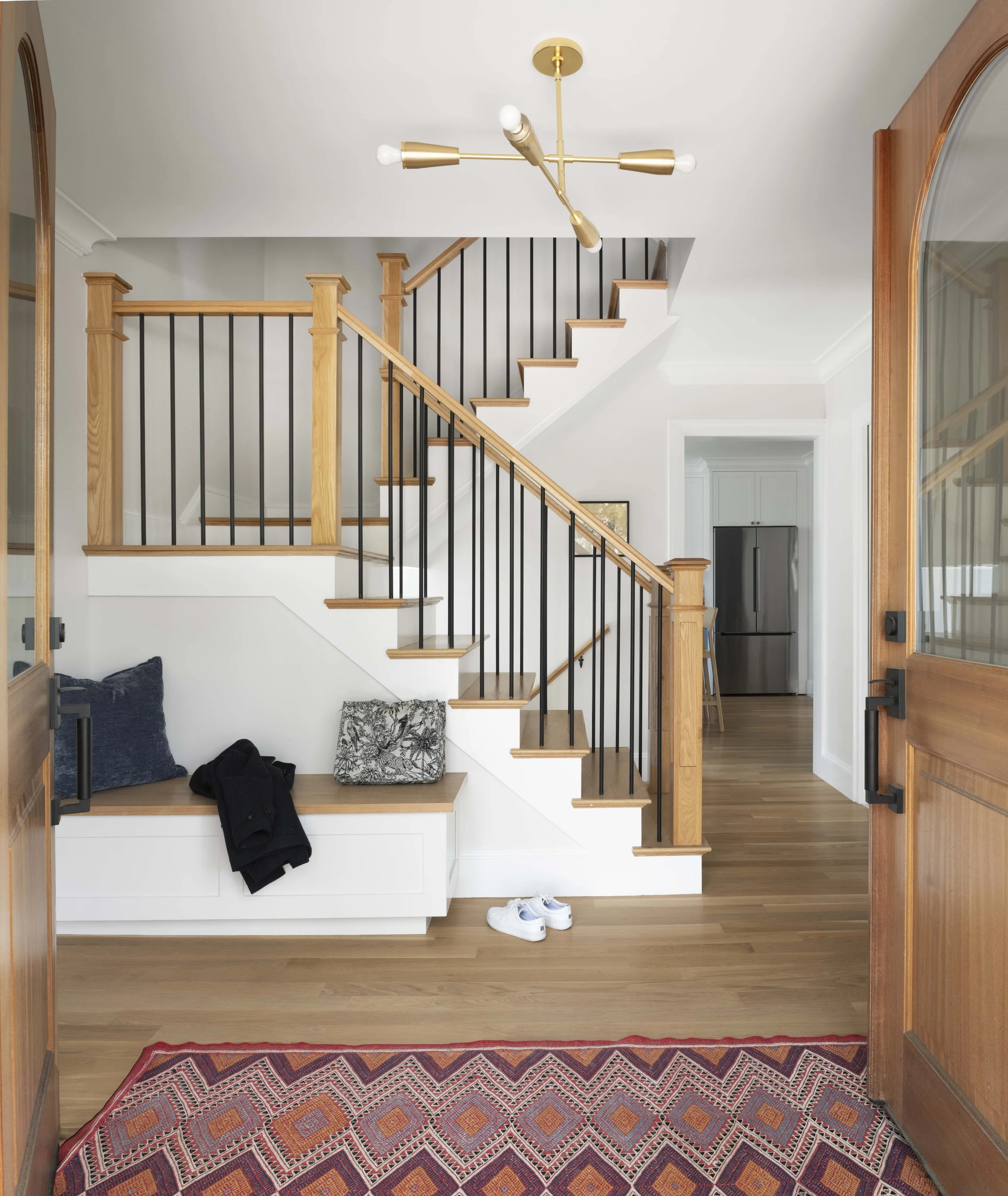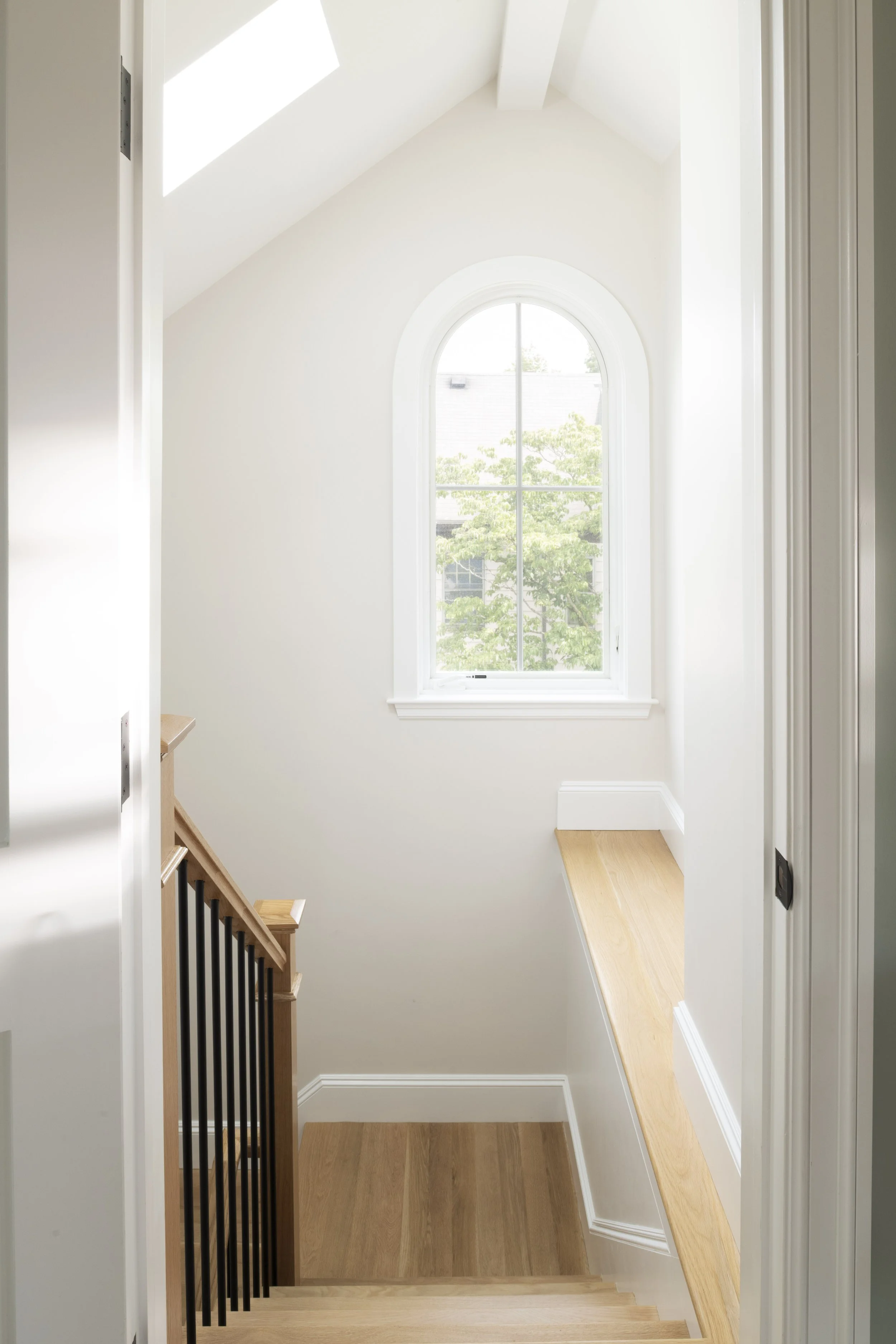 This gut renovation transformed a dated cottage in Cambridge, Massachusetts, into a modern family home with expanded living space and thoughtful details. The design included raising the main ridge to create a striking third-level primary suite, complete with elegant curved windows that flood the room with light.
