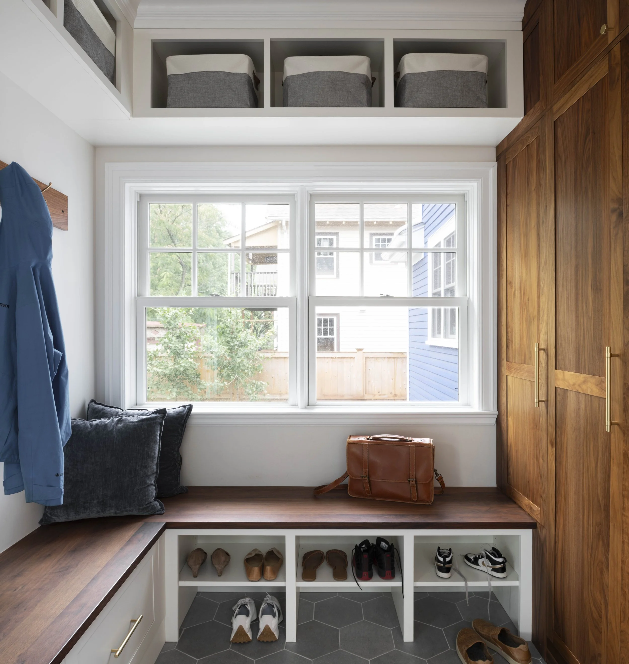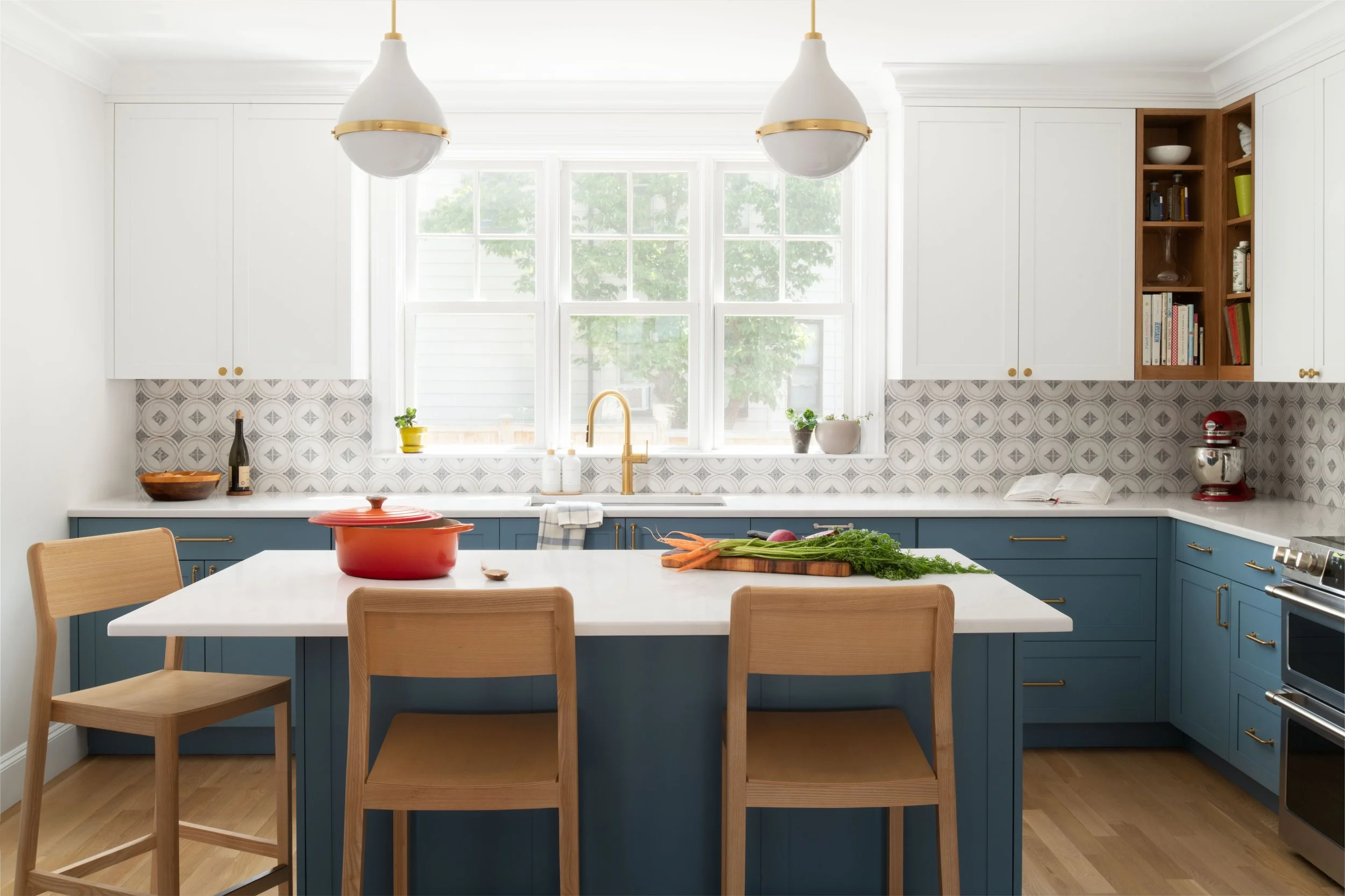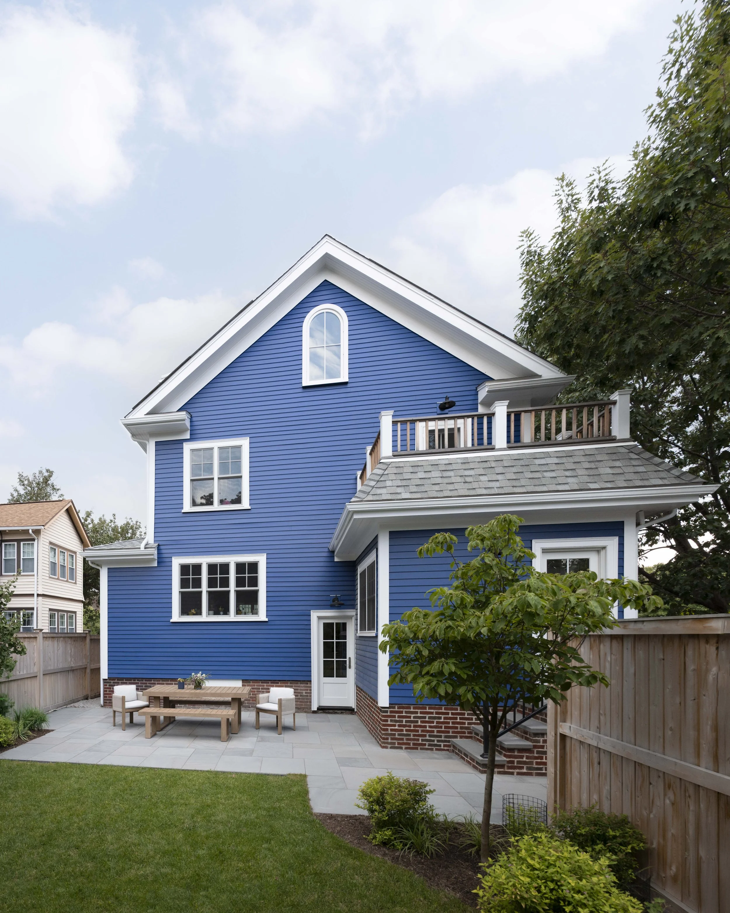 This gut renovation transformed a dated cottage in Cambridge, Massachusetts, into a modern family home with expanded living space and thoughtful details. The design included raising the main ridge to create a striking third-level primary suite, complete with elegant curved windows that flood the room with light.