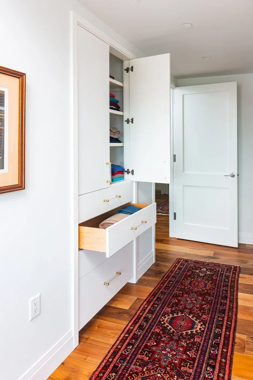 SKA was commissioned to design the fit out of this retirement apartment for our clients. The scope included designing the master bath, master closet, kitchen and living room built-ins, among other elements.