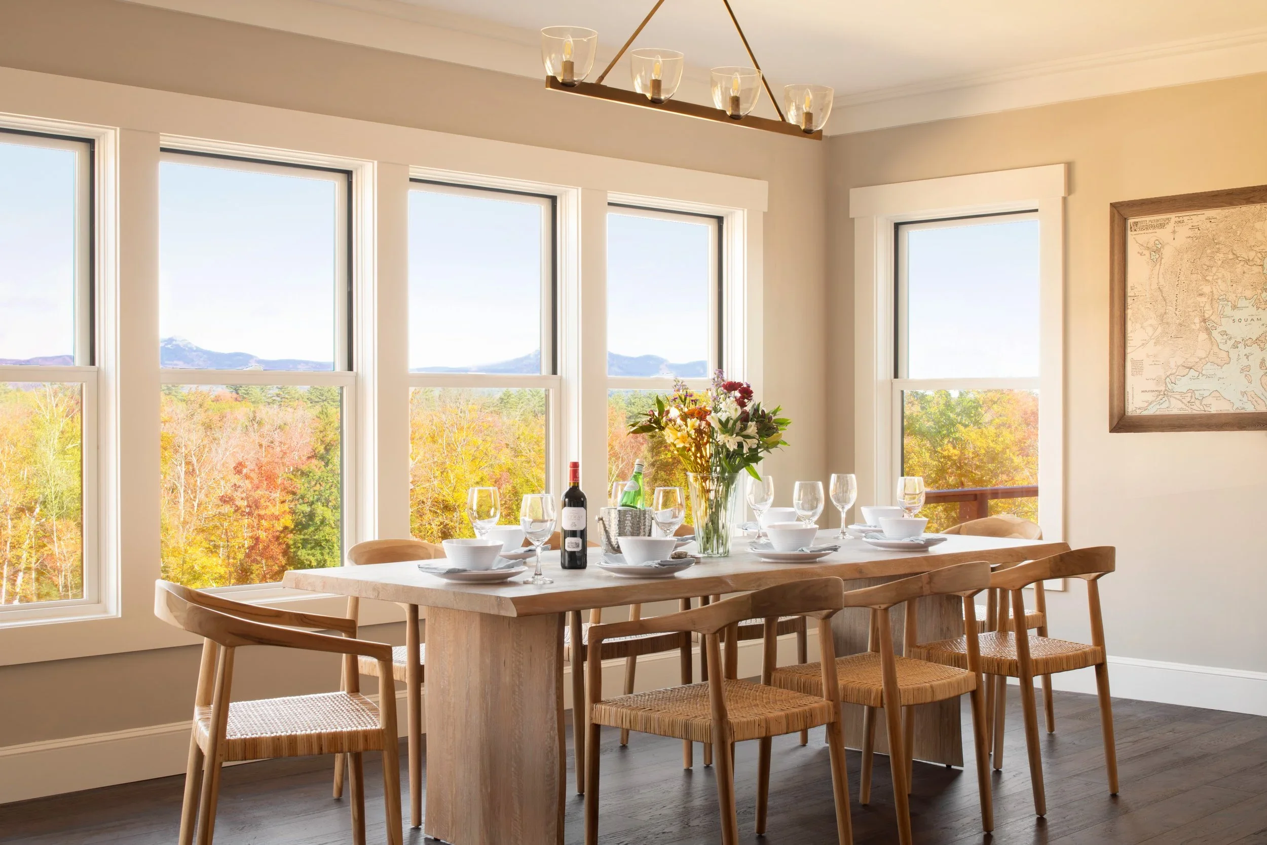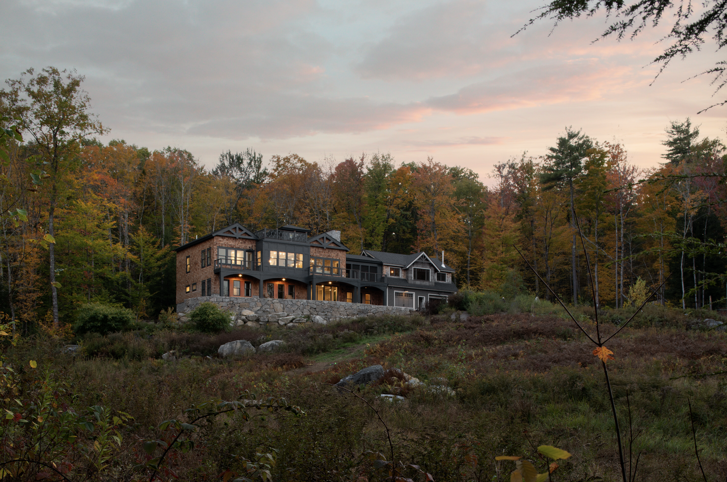 Perched on a hill with sweeping views of the White Mountains, this residential retreat is a 3,100-square-foot custom new-build attached to an existing two-car garage in Sandwich, New Hampshire. Inspired by the charm of classic New Hampshire mountain homes, and designed as a generational retreat, this home combines traditional and contemporary elements, creating a space that feels refreshingly timeless.