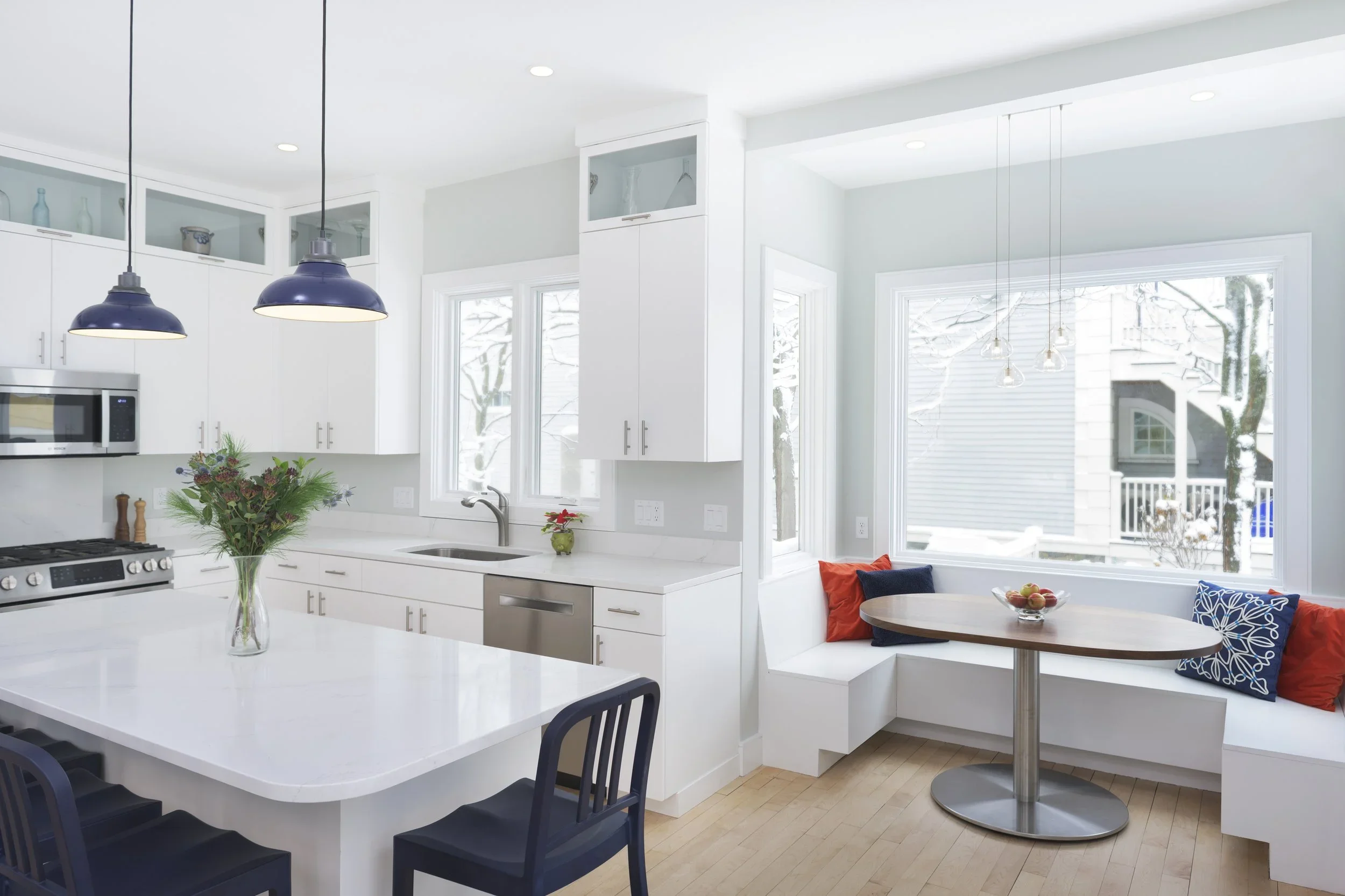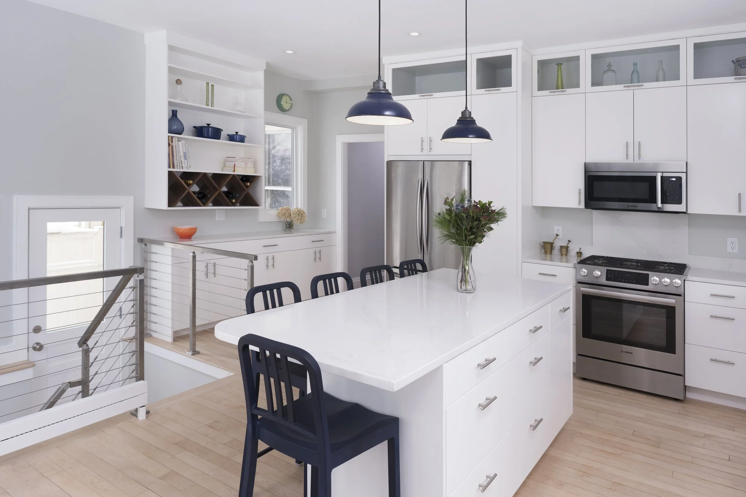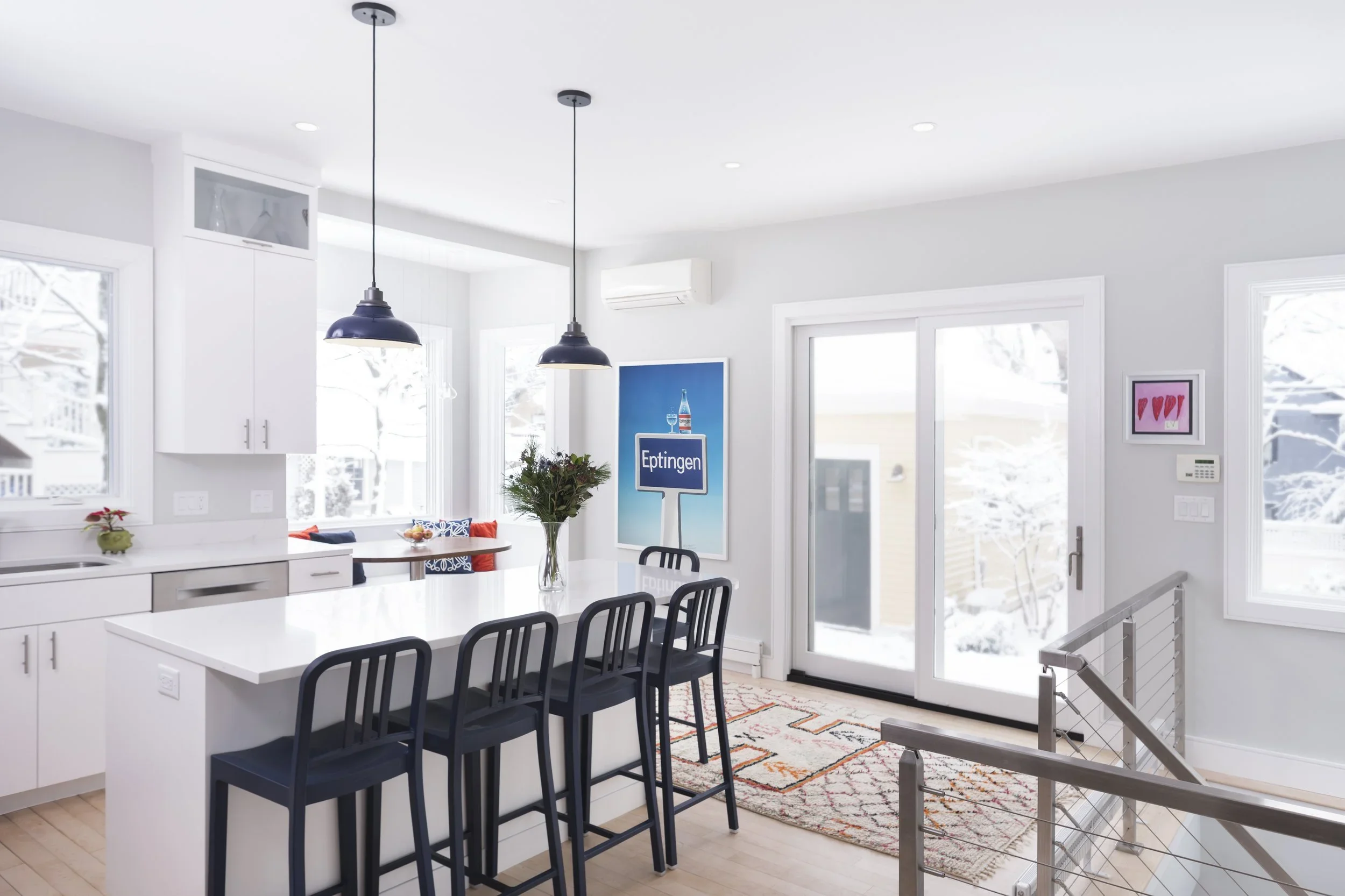 The historic Cambridge Fire Marshal’s house is now a two family Cambridge home. One of the families worked with SKA wot update their outdated kitchen to be more functional and open for their family as well as in a contemporary, Scandanavian style more particular to their tastes and traditions.