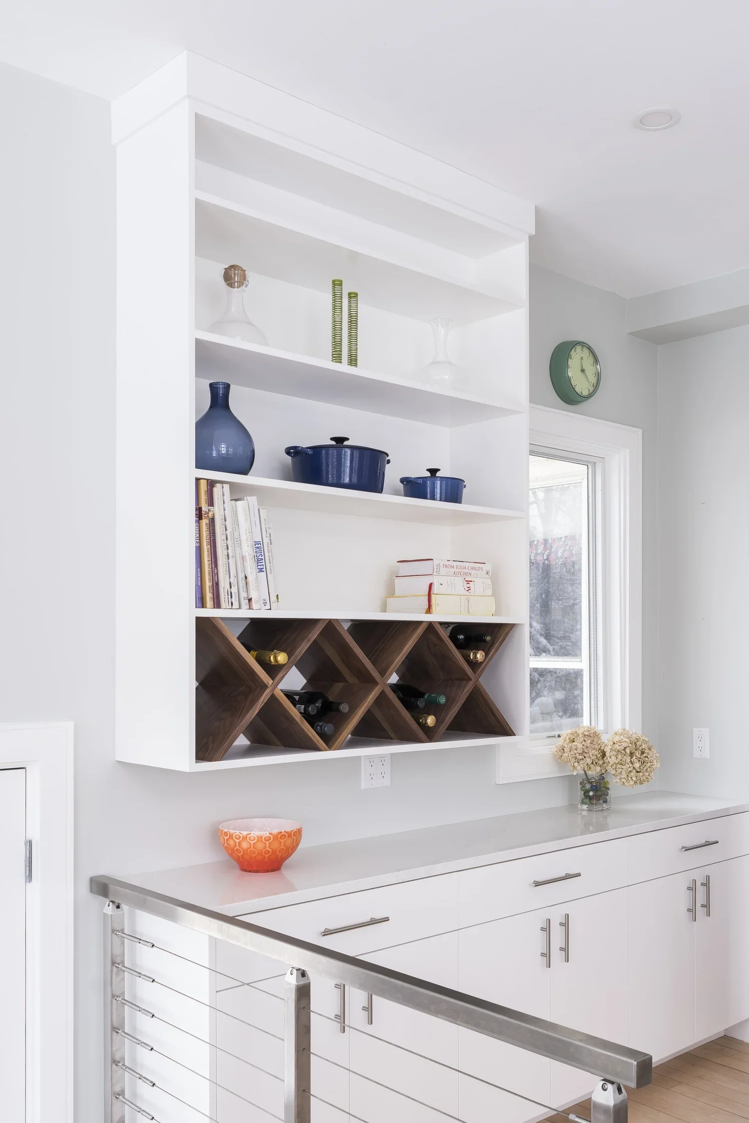 The historic Cambridge Fire Marshal’s house is now a two family Cambridge home. One of the families worked with SKA wot update their outdated kitchen to be more functional and open for their family as well as in a contemporary, Scandanavian style more particular to their tastes and traditions. The entry into the kitchen from the front of the house was opened up much more to create more inviting and welcoming view out into the large back yard.